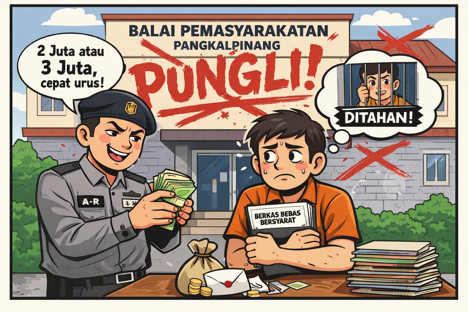 Pangkalpinang, wisenews – Dugaan praktik pungutan liar mencuat di lingkungan lembaga pemasyarakatan Kota Pangkalpinang. Seorang oknum petugas Balai Pemasyarakatan (Bapas) berinisial A-R yang menangani berkas pengajuan bebas bersyarat diduga meminta sejumlah uang kepada warga binaan yang saat ini masih menjalani masa tahanan di Lembaga Pemasyarakatan Narkotika Kelas IIA Pangkalpinang.