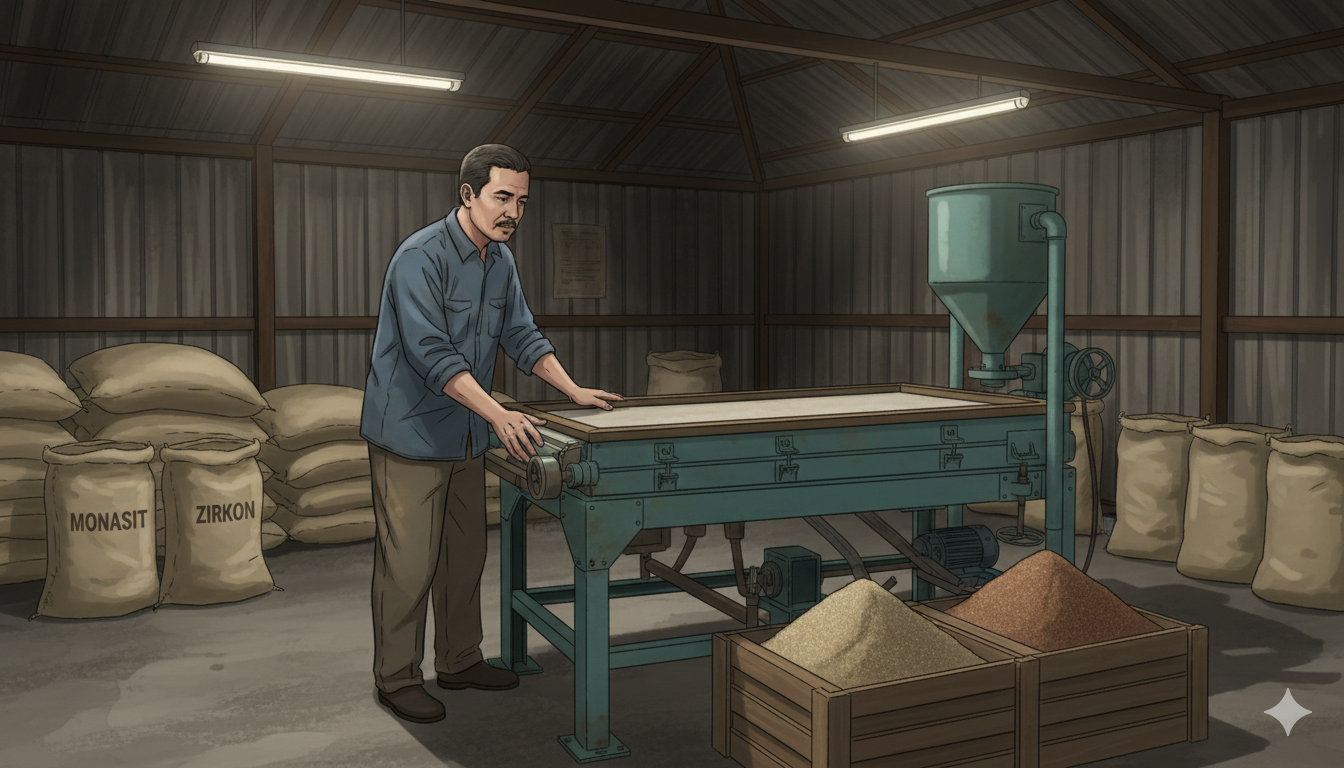 Informasi yang dihimpun, gudang milik Pak Sumin ini diduga menyimpan jenis mineral Monasit dan Zirkon. Dugaan ini menjadi perhatian serius karena kedua mineral tersebut termasuk bahan tambang yang memiliki nilai ekonomi tinggi dan pengelolaannya harus melalui izin resmi.
